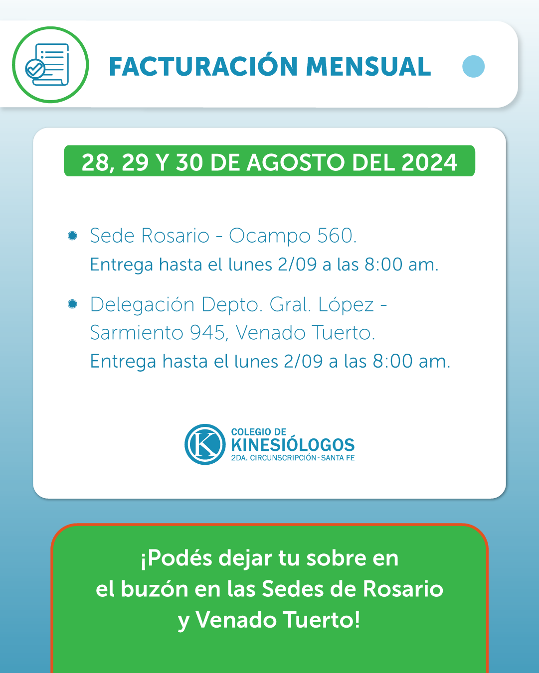 Recordá que en las sedes de Rosario y Venado Tuerto podés depositar tu sobre en el buzón.