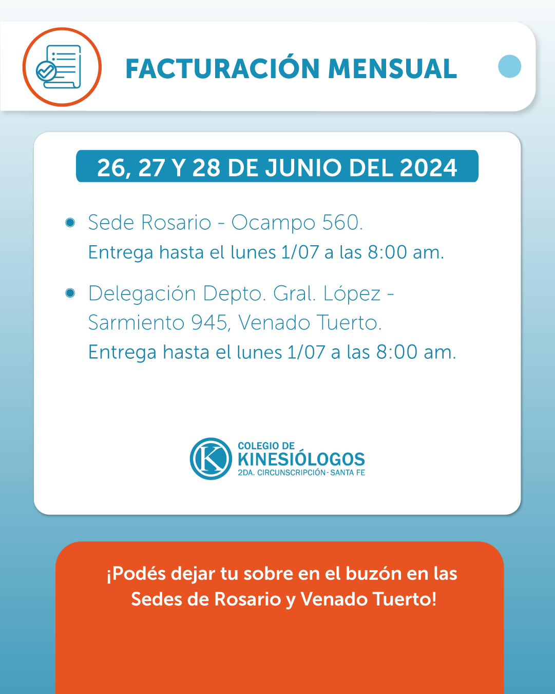 Recordá que en las sedes de Rosario y Venado Tuerto podés depositar tu sobre en el buzón.