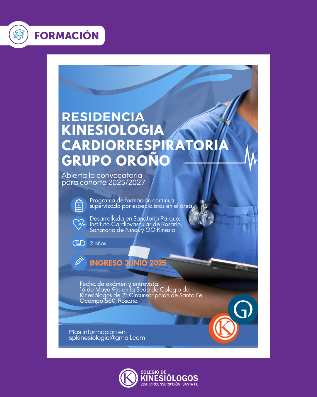 Residencia en Kinesiología Cardiorrespiratoria de Grupo Oroño en convenio con el Colegio de Kinesiólogos de la 2da Circunscripción de Santa Fe.