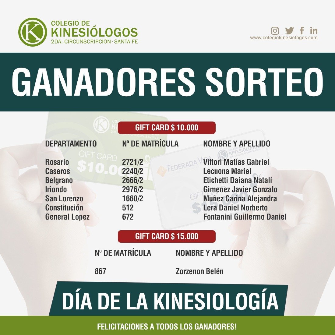 GANADORES: SORTEO DÍA DE LA KINESIOLOGÍA.