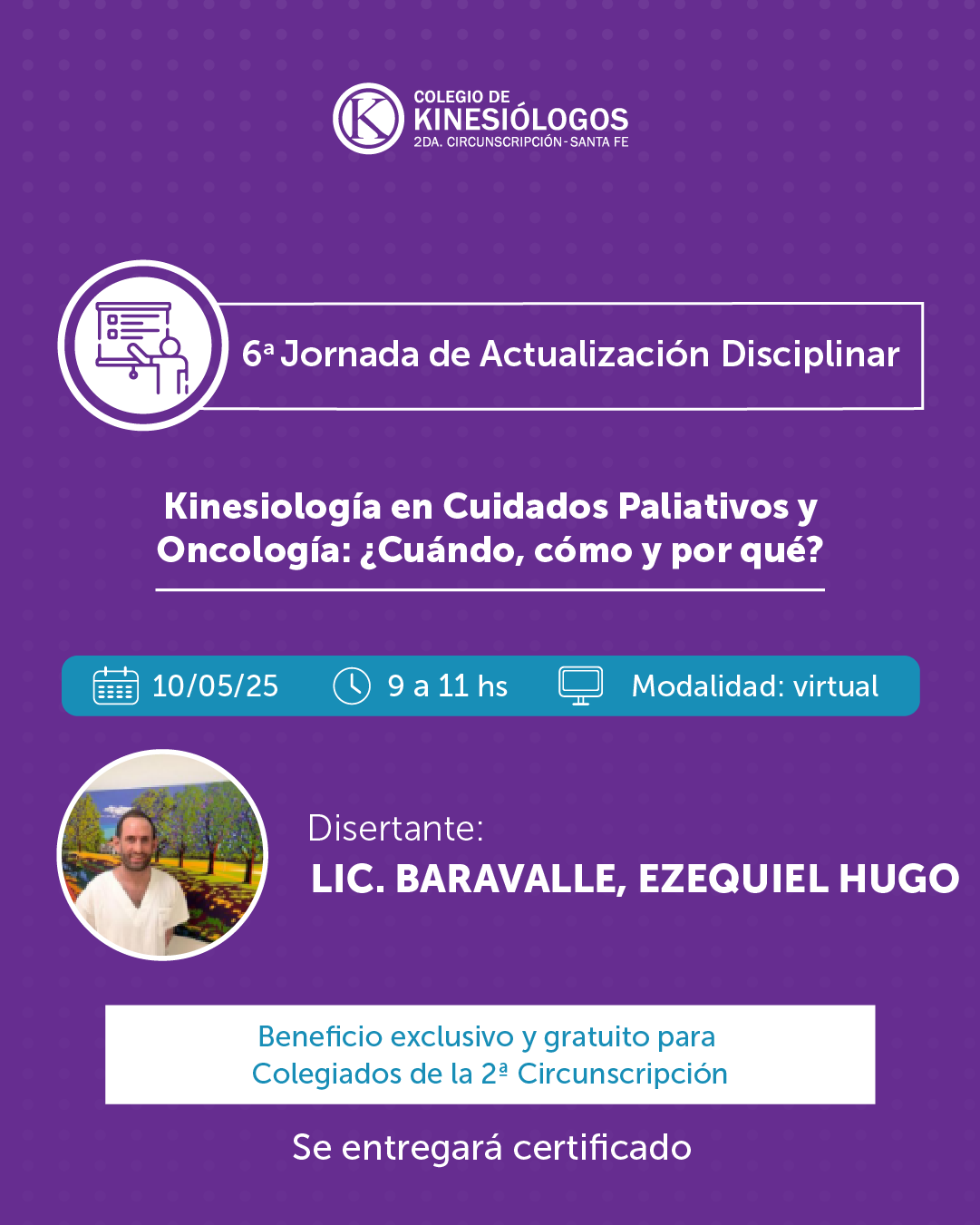 6ª Jornada de Actualización Disciplinar: Kinesiología en Cuidados Paliativos y Oncología ¿Cuándo, cómo y por qué?