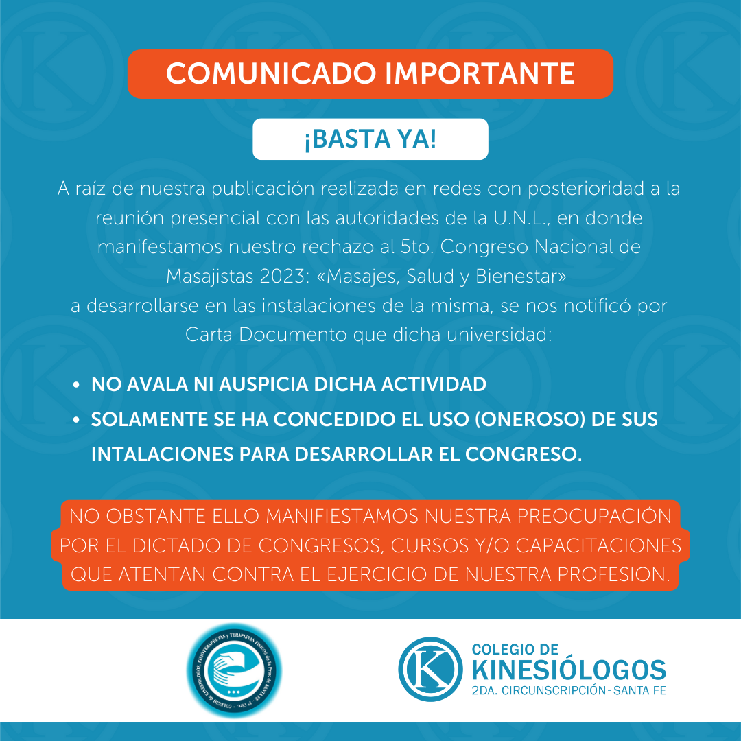 Comunicado Importante – Colegio de Kinesiólogos, Fisioterapeutas y Terapistas Físicos de Santa Fe 1ª y 2ª Circunscripción