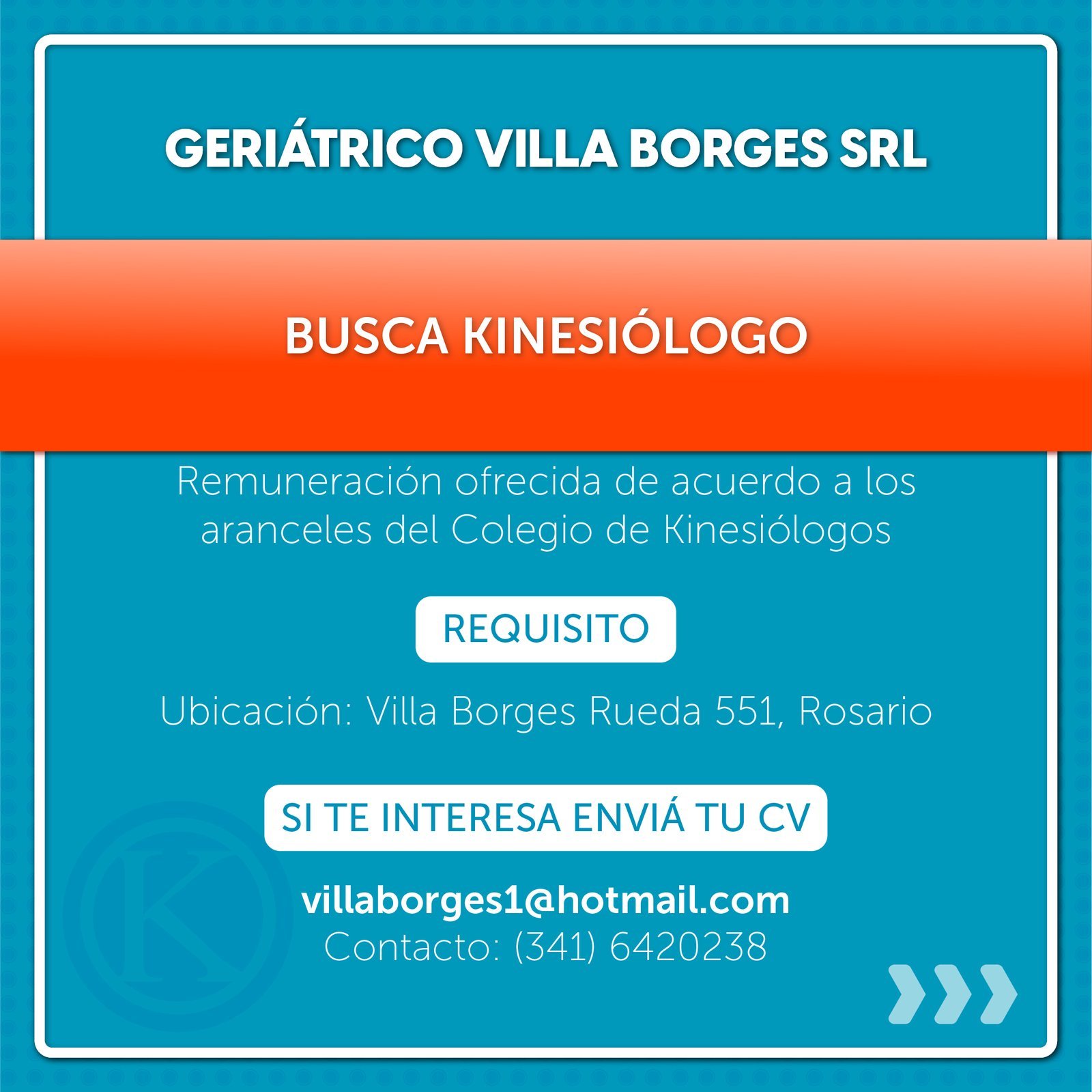 Geriátrico Villa Borges busca kinesiólogo