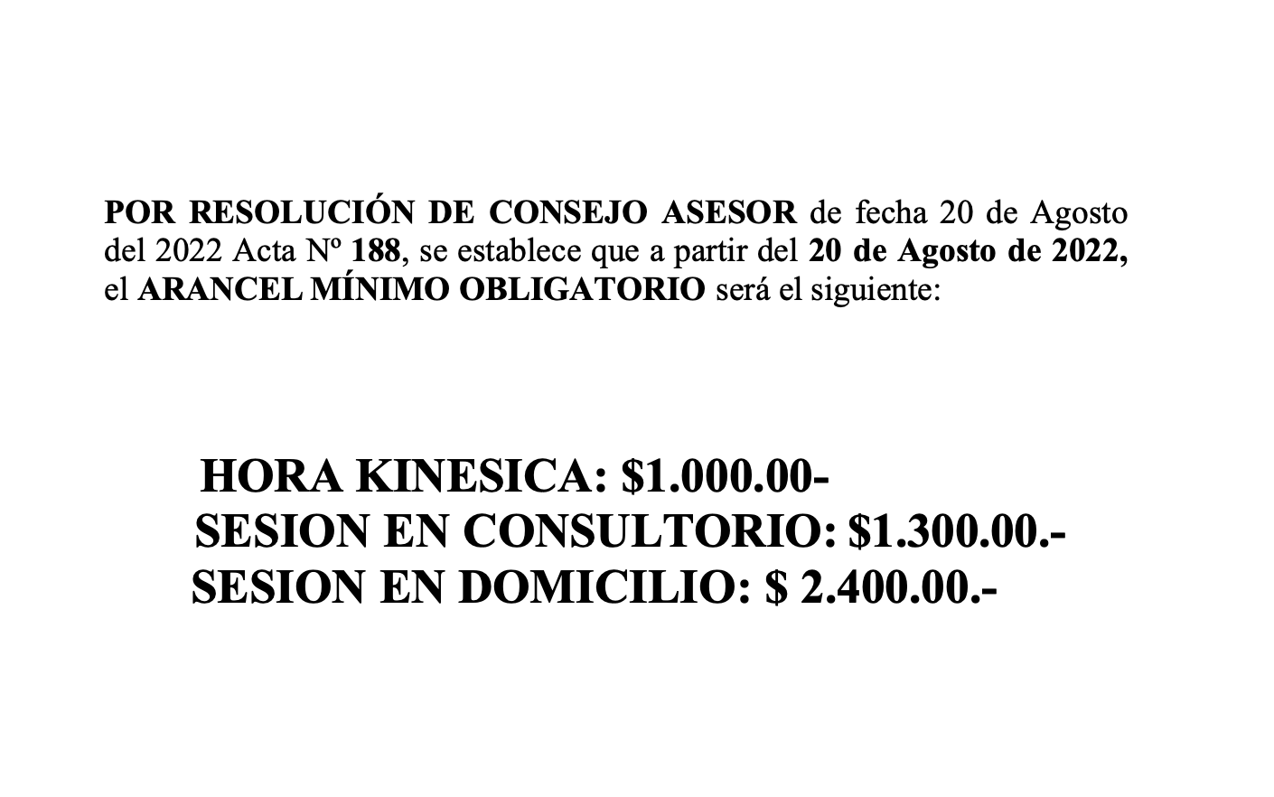 Nuevo arancel mínimo obligatorio